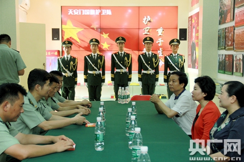 央廣網(wǎng)北京7月28日消息(記者 于聞)“八一”建軍節(jié)來臨之際,海南省婦聯(lián)主席劉錦、海南省賦蓮婦女兒童活動(dòng)中心主任許棟松一行帶著數(shù)百萬海南婦女兒童的心聲與祝福,攜手半月談雜志社副總經(jīng)理、中國公益形象大使王京忠先生,27日來到北京天安門國旗護(hù)衛(wèi)隊(duì)駐地,看望和慰問國旗護(hù)衛(wèi)隊(duì)官兵并與衛(wèi)隊(duì)政委王建華等進(jìn)行了親切友好的座談。海南省婦聯(lián)機(jī)關(guān)干部一同參加了慰問。