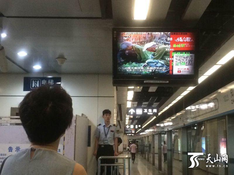 8月3日早晨8時(shí)許,已在北京生活十年的解女士,在北京地鐵10號(hào)線知春路站,忽然看見兩側(cè)報(bào)站屏上播放著一部關(guān)于新疆的公益視頻——新疆的戈壁灘上,一個(gè)老人正在升旗,旗桿是用粗糙的樹干做的。