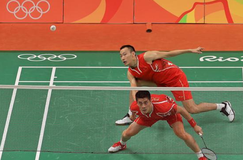 中國組合張楠、傅海峰戰(zhàn)勝馬來西亞選手獲得里約奧運羽毛球男雙冠軍