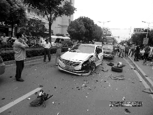據(jù) 句容交警大隊介紹,事發(fā)時,孔某(男,48歲,句容人)駕駛黑色大眾小轎車,沿句容市區(qū)文昌東路由西向東的方向行駛至事發(fā)路段時,突然駛?cè)氲缆纷髠?cè)并越過 中心線,與對面正常交會行駛的白色現(xiàn)代小型轎車碰撞并反彈波及其他車輛,共造成4輛小車受損(其中兩車受損嚴重)、2名駕駛?cè)耸茌p傷。隨后,孔某趁現(xiàn)場人 多雜亂,棄車離開。
