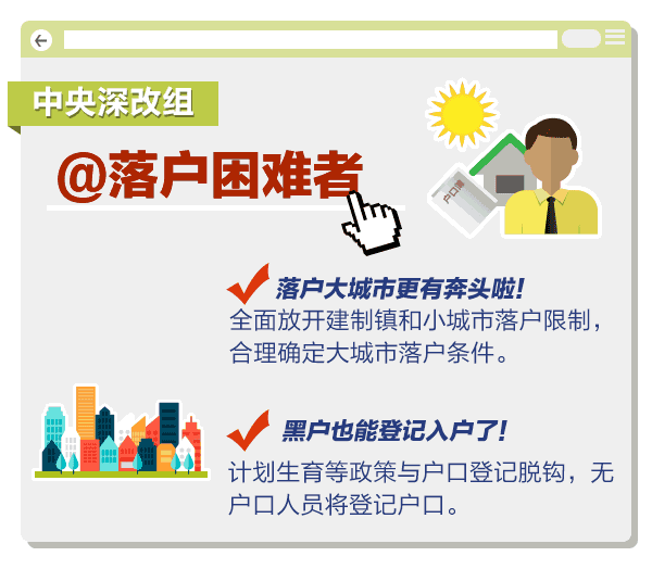 造福民眾讓深改組的故事深入人心。對(duì)重大改革尤其是涉及人民群眾切身利益的改革決策,深改組建立了社會(huì)評(píng)估機(jī)制。遇到關(guān)系復(fù)雜、牽涉面廣、矛盾突出的改革,深改組總能從人民的實(shí)際利益出發(fā)謀劃方案、制定舉措、推進(jìn)落實(shí)。群眾生活情況怎么樣?群眾訴求是什么?改革能給群眾帶來(lái)哪些獲得感?總是深改組最關(guān)心的問(wèn)題。1000天來(lái),深改組先后對(duì)改革行政審批制度、改革工商注冊(cè)制度、推進(jìn)社會(huì)主義核心價(jià)值體系建設(shè)、實(shí)施單獨(dú)兩孩政策、廢止勞動(dòng)教養(yǎng)制度、改革和完善干部考核評(píng)價(jià)制度、改進(jìn)干部選拔任用機(jī)制、堅(jiān)持厲行節(jié)約反對(duì)浪費(fèi)、深入開(kāi)展黨風(fēng)廉政建設(shè)和反腐敗斗爭(zhēng)等全社會(huì)高度關(guān)注、各方面抱有急切期盼的一系列問(wèn)題,及時(shí)組織有關(guān)部門(mén)進(jìn)行研究,出臺(tái)了系列政策措施和制度文件,有的還做出了法律決定。這些改革措施涉及到百姓生活的方方面面,對(duì)我國(guó)經(jīng)濟(jì)發(fā)展和民生改善產(chǎn)生了巨大的推動(dòng)作用和深遠(yuǎn)的社會(huì)影響。深改組在涉及農(nóng)民利益和城鄉(xiāng)關(guān)系等問(wèn)題上動(dòng)真刀、亮真槍。推進(jìn)人的城鎮(zhèn)化的重要環(huán)節(jié)在戶(hù)籍制度,加快戶(hù)籍制度改革,是涉及億萬(wàn)農(nóng)業(yè)人口轉(zhuǎn)移的重大舉措。深改組推出了尊重城鄉(xiāng)居民自主自愿、合理引導(dǎo)農(nóng)業(yè)人口轉(zhuǎn)移落戶(hù)城鎮(zhèn)的戶(hù)籍制度改革方案。為了促進(jìn)大中小城市和小城鎮(zhèn)合理布局、功能互補(bǔ),搞好基本公共服務(wù),維護(hù)好農(nóng)民的土地承包經(jīng)營(yíng)權(quán)、宅基地使用權(quán)、集體收益分配權(quán),深改組陸續(xù)推出了《關(guān)于引導(dǎo)農(nóng)村土地承包經(jīng)營(yíng)權(quán)有序流轉(zhuǎn)發(fā)展農(nóng)業(yè)適度規(guī)模經(jīng)營(yíng)的意見(jiàn)》和《積極發(fā)展農(nóng)民股份合作賦予集體資產(chǎn)股份權(quán)能改革試點(diǎn)方案》等舉措,為農(nóng)民在城鎮(zhèn)化進(jìn)程獲得更大的土地轉(zhuǎn)讓收益掃清了障礙。