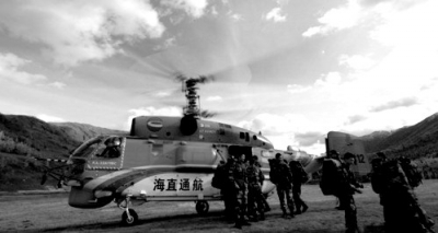 當(dāng)?shù)爻鰟又鄙龣C(jī)參與搜救,并投放食物等物資。