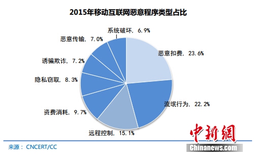 2015年移動(dòng)互聯(lián)網(wǎng)惡意程序類(lèi)型占比。