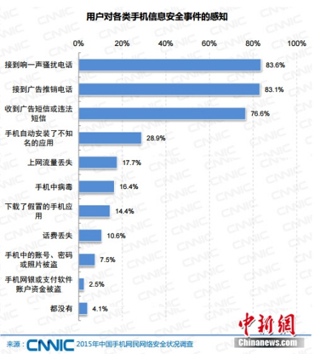 95%手機(jī)網(wǎng)民曾遇信息安全事件 過(guò)半認(rèn)為沒(méi)造成損失