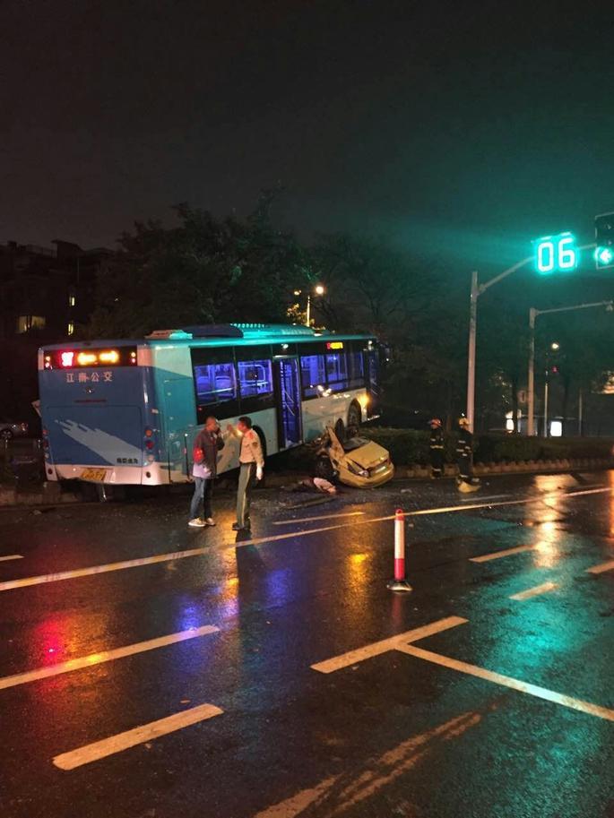 可還沒讓人緩過勁來,就在今天晚上7點50分左右,在仙林一輛97路公交車和出租車相撞,據(jù)圍觀市民表示,出租車上一名女乘客和司機(jī)當(dāng)場身亡,目前事故還在進(jìn)一步調(diào)查之中。