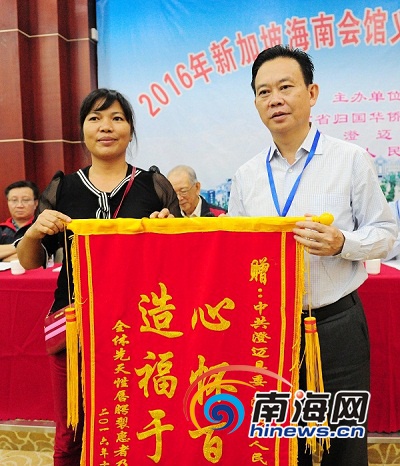 患者家屬向澄邁縣長吉兆民送上錦旗。通訊員 王家專攝