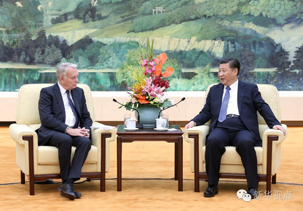 2016年10月31日,國(guó)家主席習(xí)近平在北京人民大會(huì)堂會(huì)見法國(guó)外長(zhǎng)艾羅。新華社記者龐興雷 攝