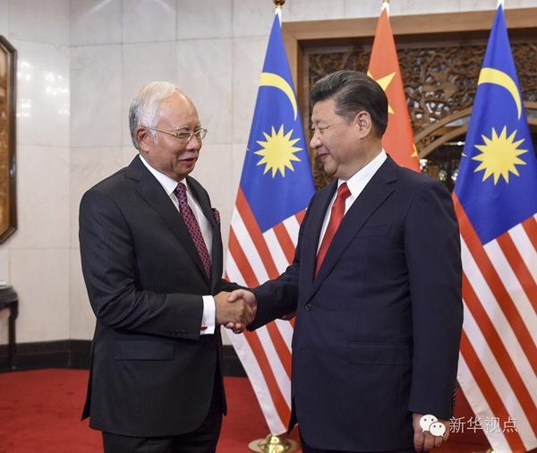 2016年11月3日,國(guó)家主席習(xí)近平在北京釣魚臺(tái)國(guó)賓館會(huì)見馬來西亞總理納吉布。新華社記者李學(xué)仁 攝