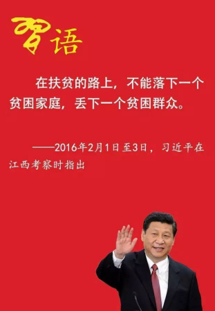 【談扶貧】習(xí)近平說(shuō),我們黨是全心全意為人民服務(wù)的黨,將繼續(xù)大力支持老區(qū)發(fā)展,讓鄉(xiāng)親們?nèi)兆釉竭^(guò)越好。在扶貧的路上,不能落下一個(gè)貧困家庭,丟下一個(gè)貧困群眾。