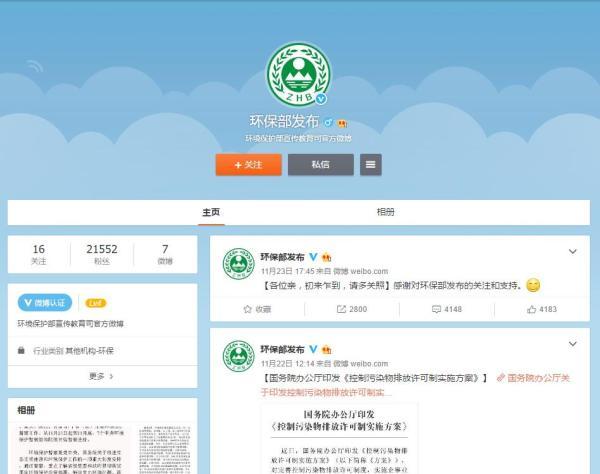 環(huán)保部入駐微博微信 網(wǎng)友:冬季開(kāi)微博勇氣可嘉