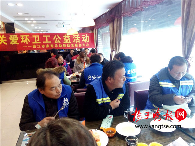 記者了解到,前來就餐的50名鎮(zhèn)江一線環(huán)衛(wèi)工人中,有30人都是公益組織的志愿者,通過這種方式召集來的。