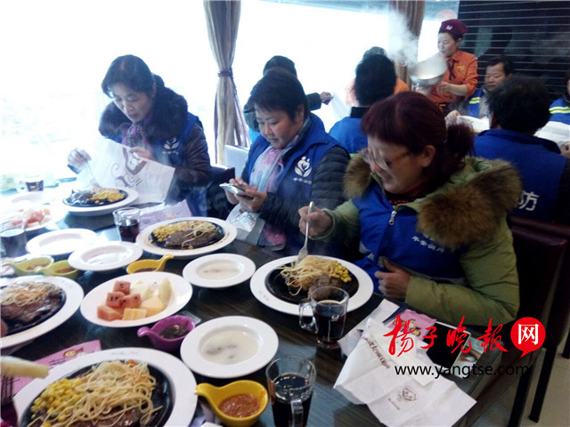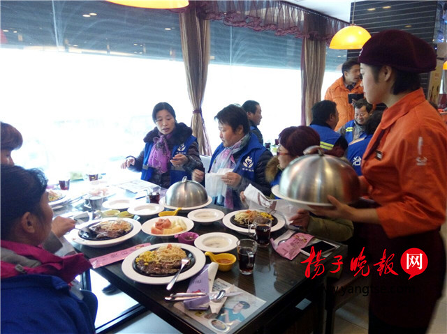 揚子晚報網(wǎng)11月25日訊(通訊員 施澎 戴勇 記者 萬凌云) 時近年末天寒地凍,然而社會各界人士關(guān)愛環(huán)衛(wèi)工人的熱情卻一波波來襲。25日中午,在鎮(zhèn)江市區(qū)夢溪路一餐廳內(nèi),鎮(zhèn)江50名環(huán)衛(wèi)工人齊聚一堂,“嘗鮮”吃牛排。這次溫暖、關(guān)愛環(huán)衛(wèi)工公益活動,是由鎮(zhèn)江公益組織“家家樂助殘助老服務(wù)中心”和這家餐廳聯(lián)合發(fā)起的。而與以往社會給環(huán)衛(wèi)工人發(fā)“愛心福利”的方式不同,這次前來就餐的環(huán)衛(wèi)工中,大多數(shù)都由愛心人士走到作業(yè)地段上,現(xiàn)場邀請召集而來的。由此,面對天上掉下來的“牛排”,邀請人還被當(dāng)成了“騙子”。