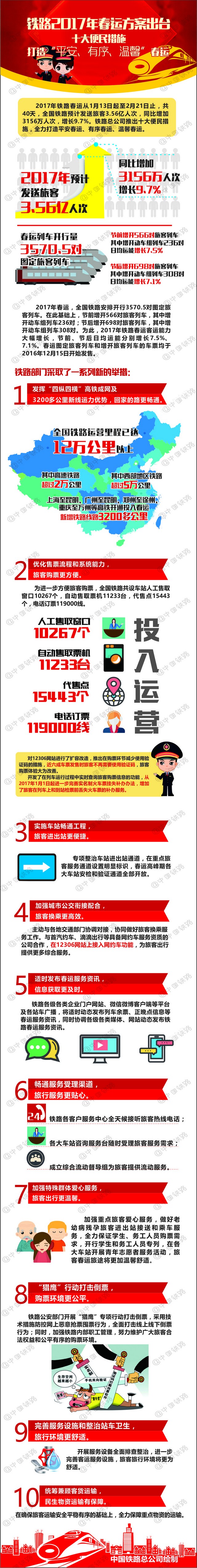 為做好2017年春運工作,最大努力方便人民群眾出行,鐵路總公司推出十大便民措施,全力打造平安春運、有序春運、溫馨春運。