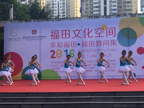 央廣網(wǎng)深圳12月11日消息(記者 于揚)2016年12月11日下午深圳市十二月舞蹈藝術(shù)團在深圳福田區(qū)福華新村文化廣場拉開了《舞彩福田》優(yōu)秀少兒舞蹈進社區(qū)活動的序幕,此次活動是深圳市十二舞蹈藝術(shù)團高雅活動藝術(shù)進社會系列活動的第四場活動,也是福田區(qū)文化空間多彩福田之福田舞間集系列活動的收宮之作。
