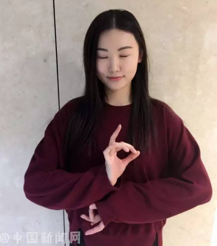 將手背朝前,中指無名指向下一彎,一個手語的“愛”就比好了!
