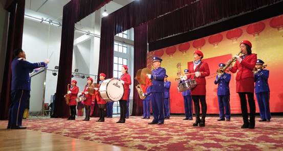 村里的銅管樂隊(duì)演奏起了《沒有共產(chǎn)黨就沒有新中國(guó)》、《走向復(fù)興》等組曲,樂手們個(gè)個(gè)精神抖擻。54歲的中音薩克斯手王維嘉是鎮(zhèn)政府的工作人員,6年前開始加入樂隊(duì):“那個(gè)時(shí)候我什么都不懂,村里花錢請(qǐng)了老師來教,現(xiàn)在每周二都在文化禮堂練習(xí),也能演奏不少曲目了!