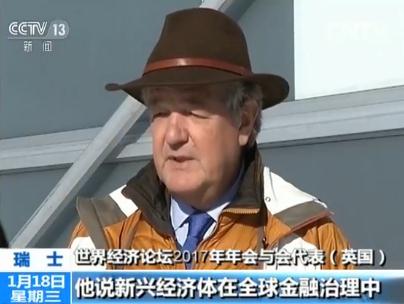 世界經(jīng)濟論壇2017年年會與會代表(英國):他說新興經(jīng)濟體在全球金融治理中的參與是非常重要的,中國是重要的參與者,事實上中國能夠幫助那些二戰(zhàn)之后70多年都保持金融治理地位的國家,真正的開放起來,包括那些正在開放過程中的國家。