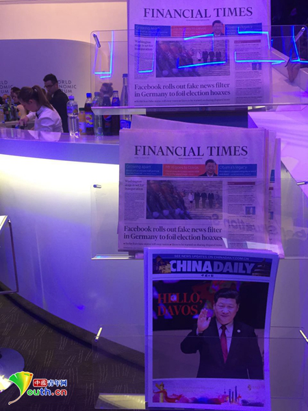 世界經(jīng)濟(jì)論壇2017年年會現(xiàn)場,習(xí)主席成為熱點。董博供圖