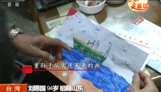 94歲的劉恩國,聽力不好,不怎么愛說話,可一提到山東老家,老人馬上打開了話匣子,還領(lǐng)我們到家里看孫子從大陸寄來的照片。