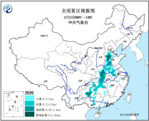 中新網2月5日電 據中央氣象臺網站消息,中央氣象臺2月5日06時繼續(xù)發(fā)布大霧黃色預警:預計,5日早晨至上午,河北南部、河南中東部、山東西部、安徽北部、湖北中部、湖南北部、貴州中東部、廣西中部等地有大霧,其中,河北南部、河南中東部、山東西南部、湖北中部、湖南北部、貴州中部等地的部分地區(qū)有能見度低于500米的濃霧,局地有能見度低于50米的特強濃霧。