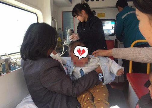 幸虧冬天衣被包裹得多,嬰兒面部有大面積淤青暫無生命危險,10:42分,救護(hù)到現(xiàn)場接走傷員。