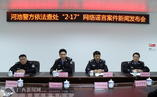 廣西新聞網(wǎng)河池2月20日訊(記者 覃錚)河池警方于20日下午召開新聞發(fā)布會,宣告依法查處了發(fā)生在本市的“2.17”網(wǎng)絡(luò)謠言案件。目前,該案件始作俑者已被公安機(jī)關(guān)依法處以行政拘留十日。