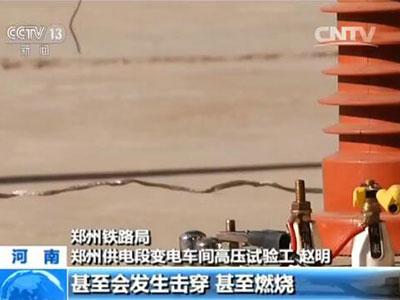 鄭州鐵路局鄭州供電段變電車間高壓試驗工趙明:兩萬伏多一點,還不到兩萬五千伏。