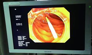 據(jù)中山一院胃腸外科譚進(jìn)富副主任醫(yī)師介紹,胃鏡檢查發(fā)現(xiàn),這根牙簽一路下滑,滯留在小腸,一端刺破腸道,鉆出去的部分占了三分之二長,引發(fā)了嚴(yán)重感染。