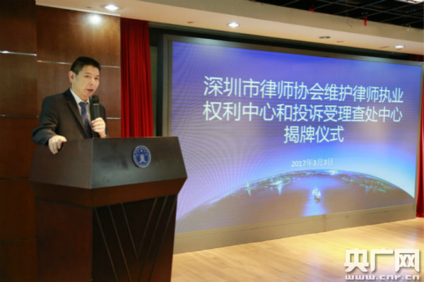 央廣網(wǎng)深圳3月3日消息(記者黃倩、于鑫淼)今天上午,深圳律協(xié)掛牌成立“維護(hù)律師執(zhí)業(yè)權(quán)利中心”和“投訴受理查處中心”。深圳市司法局局長(zhǎng)蔣溪林、深圳市律師協(xié)會(huì)會(huì)長(zhǎng)高樹等為維權(quán)中心和投訴中心揭牌。
