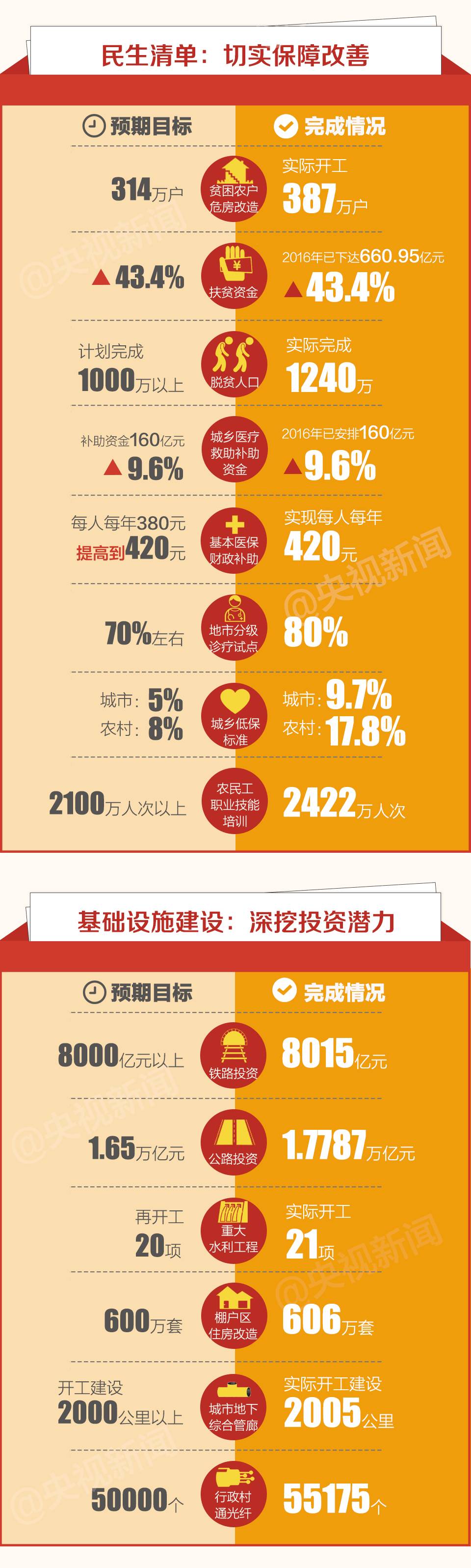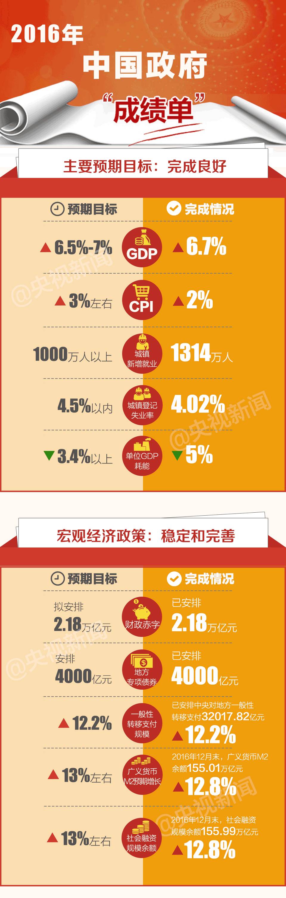 2017年中國(guó)“兩會(huì)”時(shí)間已經(jīng)開(kāi)啟。3月1日,國(guó)務(wù)院公布了2016年《政府工作報(bào)告》量化指標(biāo)任務(wù)的落實(shí)情況,三十多項(xiàng)硬指標(biāo)中,有的達(dá)標(biāo)完成,有的超額完成。接下來(lái),小編就帶你來(lái)逐一“對(duì)賬”,看看這份有關(guān)我國(guó)經(jīng)濟(jì)社會(huì)發(fā)展的答卷,你給打幾分?