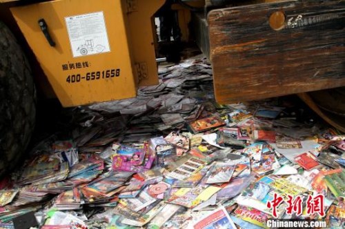 資料圖:侵權(quán)盜版及非法出版物銷毀現(xiàn)場(chǎng)。田進(jìn) 攝