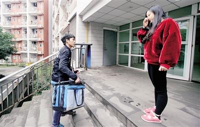 毛召木將外賣送到同學(xué)手中。