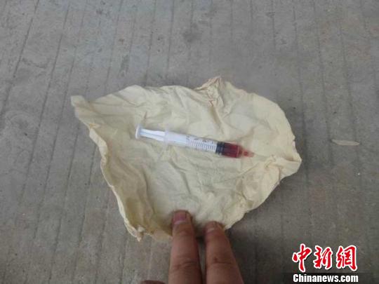 自備針管,制作“血液”,在碰瓷后將針管內(nèi)的“血液”注入耳朵,倒地假裝重傷……自帶道具碰瓷如演戲一般的男子被蘭州警方查獲!∑呃锖咏痪箨(duì)供圖 攝