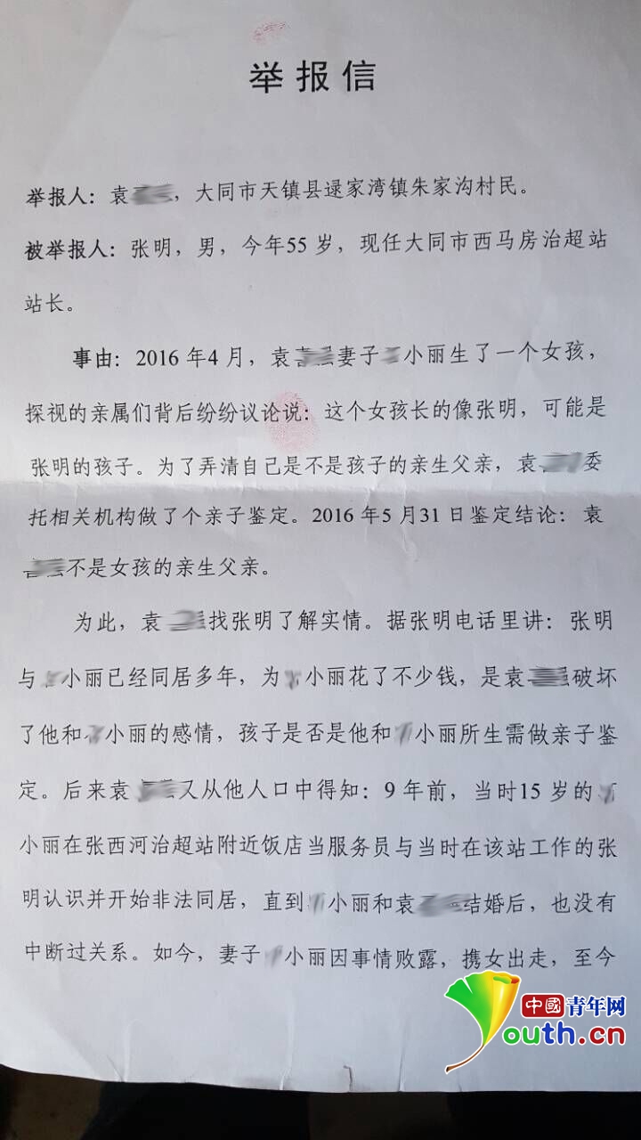 中國青年網(wǎng)記者聯(lián)系到該貼的舉報(bào)人袁某某,袁某某稱自己與前妻小麗于2015年5月份結(jié)婚。2016年4月,小麗生了一個(gè)女孩,探視的親屬紛紛議論稱女孩長得不像袁某某而像張明。后,袁某某委托相關(guān)機(jī)構(gòu)進(jìn)行親子鑒定,結(jié)果顯示袁某某非女孩親生父親。