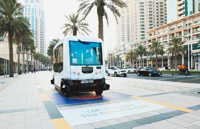 迪拜在市中心試運(yùn)營的無人駕駛客車。