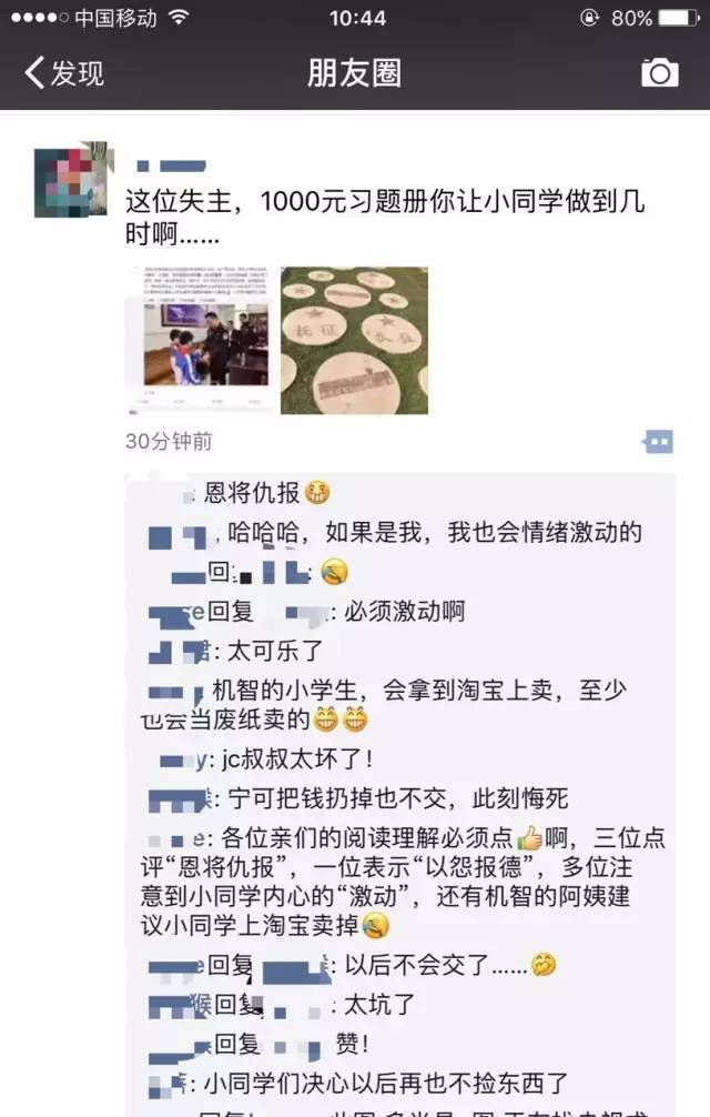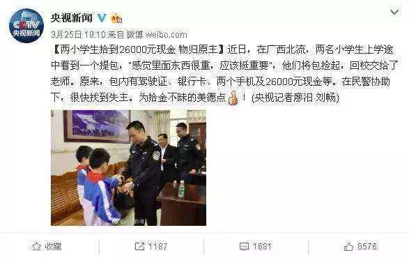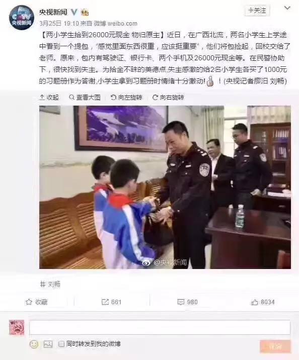 。ㄔ瓨(biāo)題:失主回贈撿錢小學(xué)生1000元習(xí)題冊。窟@張圖刷屏了!然而央視微博卻回應(yīng)… )