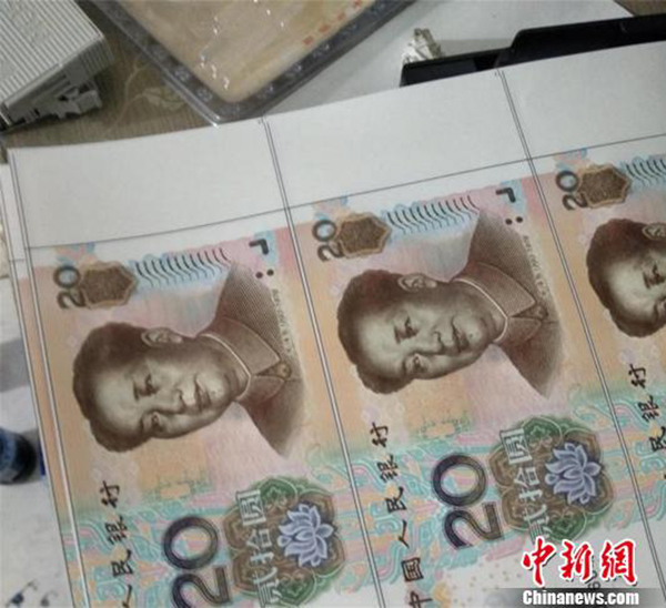 警方查獲嚴(yán)某印制的假鈔。