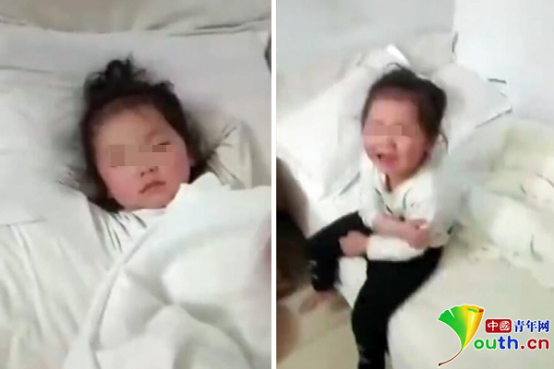 網(wǎng)傳視頻顯示,一名女孩正在床上熟睡,一男子走過來后開始猛烈掌摑女孩,毆打女孩頭部,同時(shí)用手機(jī)拍攝錄像。女孩被打后大哭不止,隨即用手護(hù)頭,不斷躲閃。視頻后半段顯示,女孩坐在床邊小聲哭泣,臉色有些紅腫,視頻拍攝者繼續(xù)用手扇打女孩臉頰和身體。網(wǎng)傳時(shí)長30秒的視頻中,男子扇打女孩50余次。