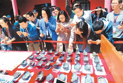圖為考古工作人員展示的各種出水文物。楊 濤攝