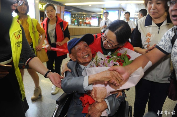 4月19日晚9點(diǎn),成都雙流國際機(jī)場,一架從寶島臺灣飛來的飛機(jī),穩(wěn)穩(wěn)降落在四川的土地上,胡定遠(yuǎn)蹣跚著從機(jī)艙走出,眼前的景象令這位老人眼眶濕潤,“我回家了。”