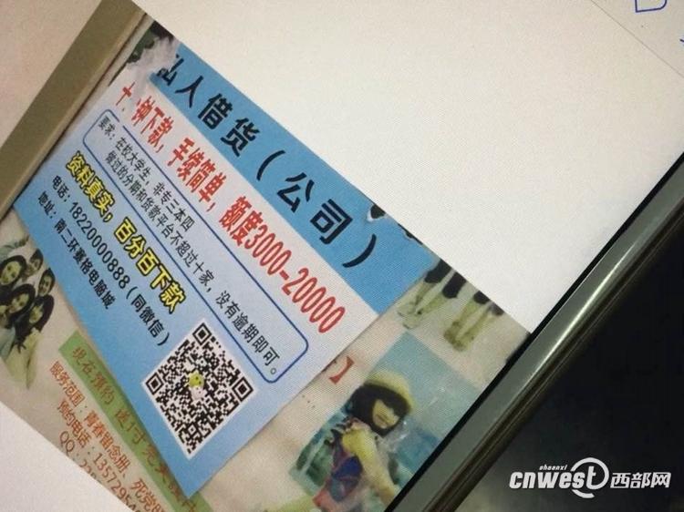那么在小王學(xué)校中肆意張貼、讓他萌發(fā)出貸款想法的貸款小廣告,在西安其他學(xué)校是否存在,其中真的能夠快速貸款嗎?記者也走訪了西安南郊的西安建筑科技大學(xué)和西安體育學(xué)院。