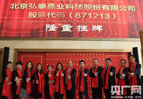 央廣網(wǎng)北京4月27日消息(記者 于聞)4月27日,北京弘泰嘉業(yè)科技股份有限公司在北京市金融大街全國(guó)中小企業(yè)股份轉(zhuǎn)讓系統(tǒng)中心隆重舉行新三板掛牌敲鐘儀式。該公司董事長(zhǎng)畢燃等負(fù)責(zé)人、投資方負(fù)責(zé)人以及媒體代表等出席掛牌儀式,共同見(jiàn)證了“遠(yuǎn)程病理服務(wù)第一股”啟航。