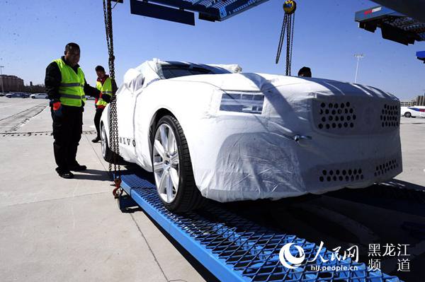 沃爾沃全新S90長軸距版豪華轎車從大慶起運(yùn)出口美國。楊海全攝