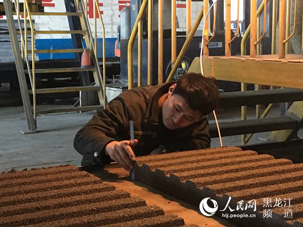 工人對(duì)生產(chǎn)的吸音板進(jìn)行檢測(cè)。楊海全攝