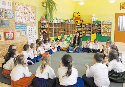 “一帶一路”在波蘭引發(fā)“漢語(yǔ)熱”。波蘭東南部城市熱舒夫從2012學(xué)年在公立幼兒園免費(fèi)開設(shè)漢語(yǔ)課。圖為熱舒夫市第三十七公立幼兒園內(nèi),中國(guó)老師正在給波蘭學(xué)齡前兒童上漢語(yǔ)課。