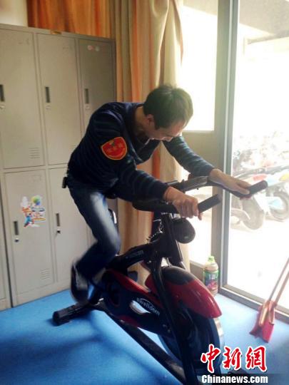 圖為一名車(chē)長(zhǎng)通過(guò)快速騎單車(chē)釋放壓力!⊥跚锾m 攝