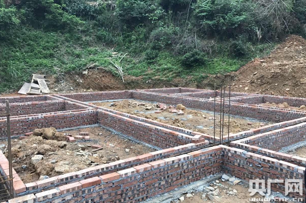 在這之前,住在這條山?jīng)_中間的村民想要出來,只有一條僅僅能容納一人通過的土路。拐過彎來就看到一片正在施工的工地,來的路上村委會委員告訴記者這里也是一個貧困戶,正在進(jìn)行分散自建房屋,走到最里面看到的一小片就是耿龍威新家的工地。