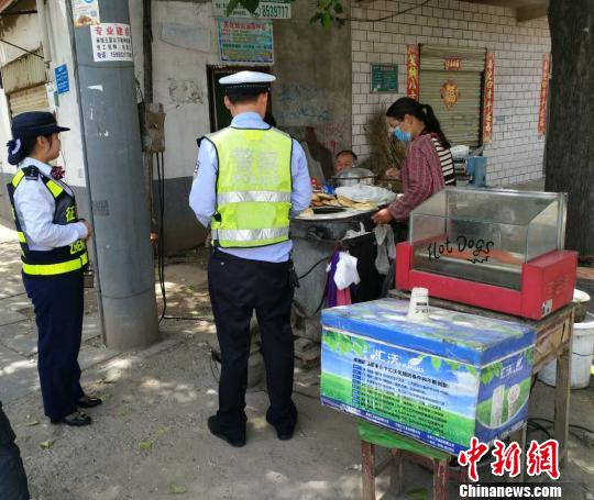 圖為民警向街頭市民詢問老人的家人和住址!≈車 攝