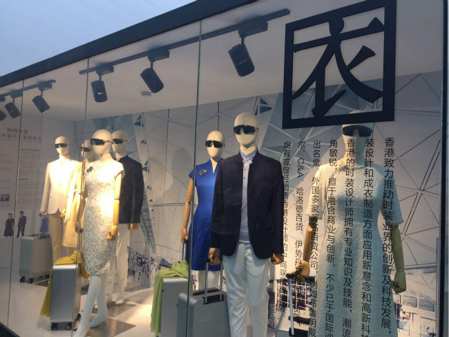 香港館展出由香港著名時裝設計師楊棋彬設計的多款具東方元素的時尚服飾。它們的特色在于中西融合,在面料和裁剪上,遵照西方服裝的標準,在細節(jié)做抽象的東方元素點綴,不僅適合正式場合穿著,也是理想休閑服飾。