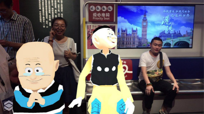 與老夫子漫畫人物拍照: 駐粵辦開發(fā)了一個拍攝擴容實景的手機程序,專們給參觀香港館的人士在館內(nèi)下載至自己的手機,與虛擬的香港原創(chuàng)卡通人物”老夫子”坐在地鐵座椅上拍照留念。